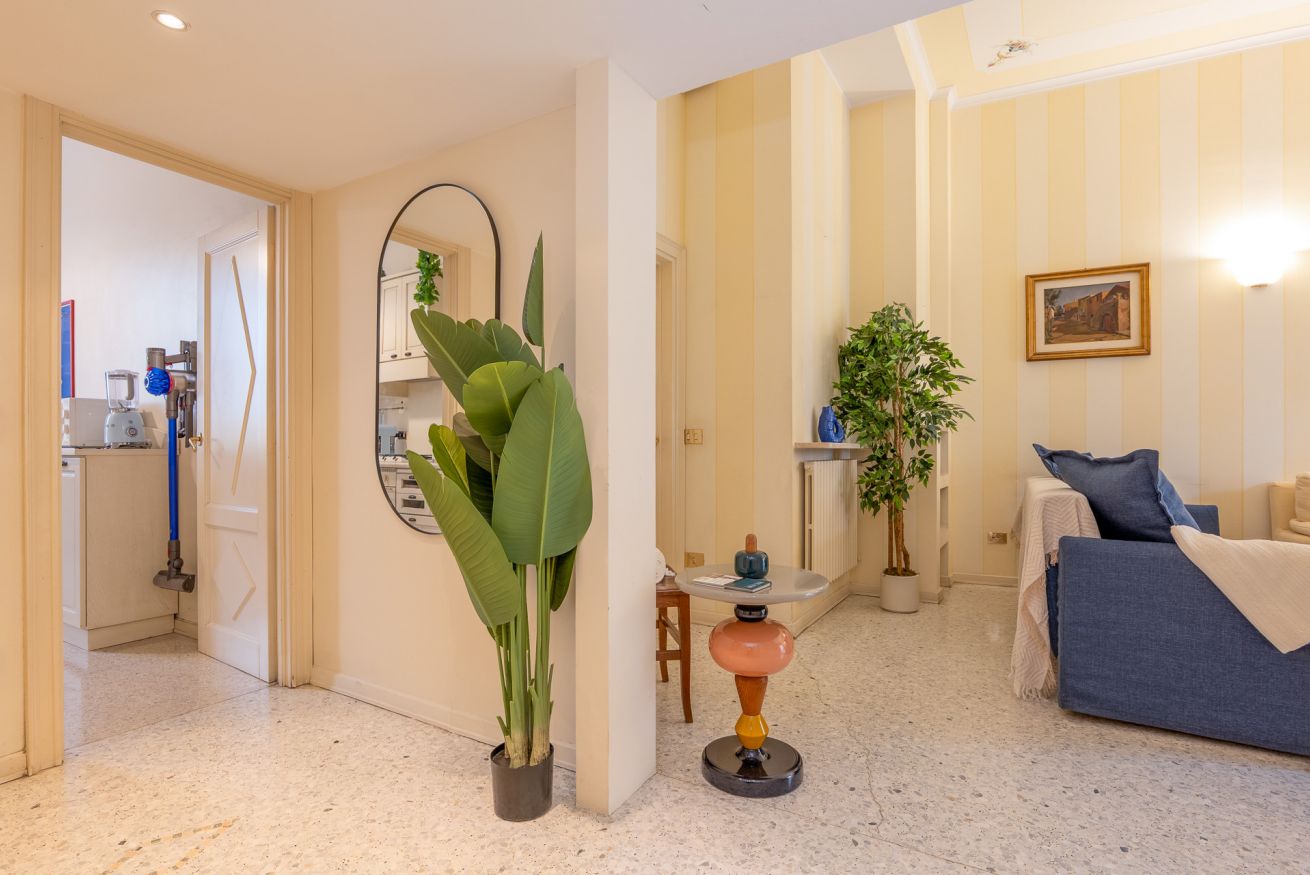 Entrando nell’appartamento si percepisce subito l’atmosfera delle classiche case milanesi eleganti, con soffitti alti, grandi finestre e ambienti ampi e luminosi. Con i suoi 93 mq, la casa offre spazi generosi che permettono di vivere il soggiorno in totale comfort, sia per brevi vacanze che per permanenze più lunghe.