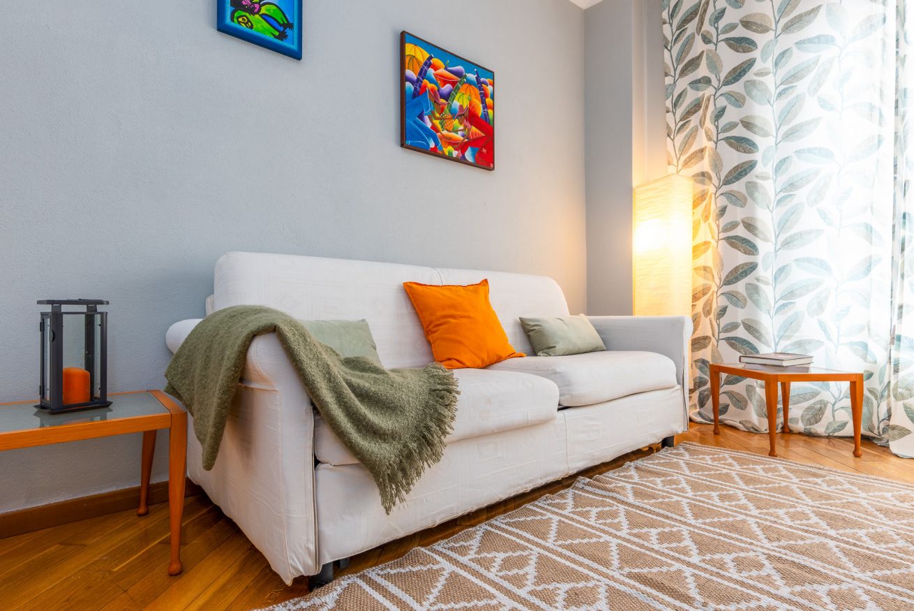 🛋️ Soggiorno / Zona living: Il soggiorno è il cuore pulsante dell'appartamento: accogliente, luminoso grazie alle grandi finestre con tende botaniche, e arredato con gusto. Qui troverai: