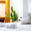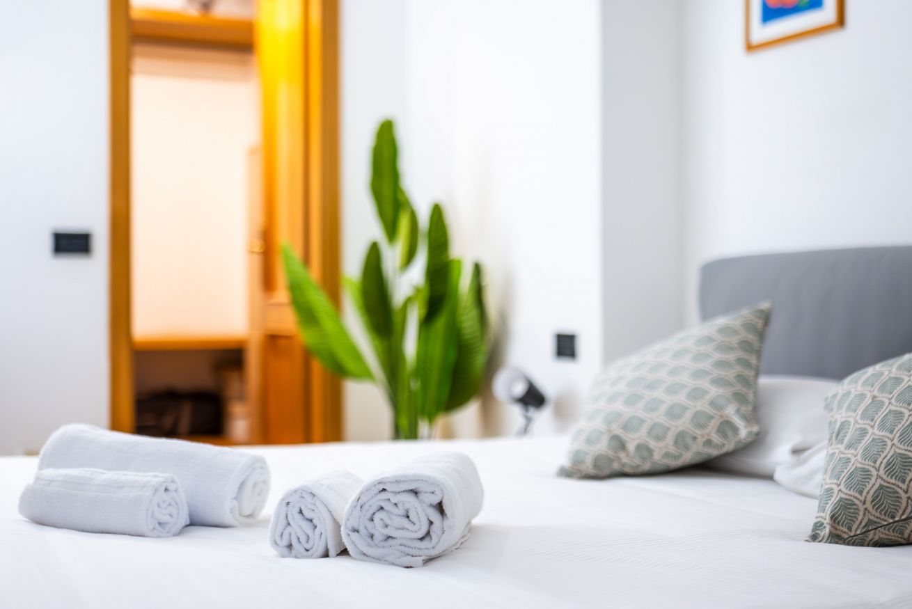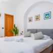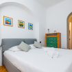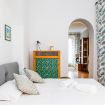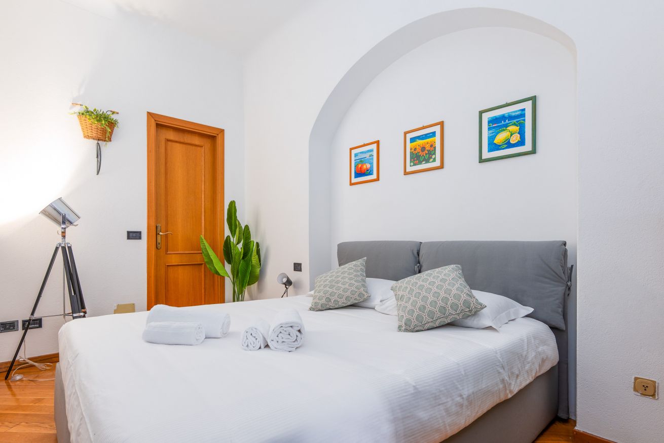 🛏️ Camera da letto matrimoniale: La camera è un rifugio tranquillo e luminoso, pensato per garantire il massimo del riposo. Il letto matrimoniale con testiera imbottita grigia occupa con eleganza una nicchia ad arco, elemento architettonico originale che regala alla stanza un'atmosfera quasi mediterranea. Quadretti colorati alle pareti, una cassettiera vintage e piante verdi completano il look. La finestra lascia entrare luce naturale durante il giorno, rendendo l'ambiente piacevole e rigenerante.