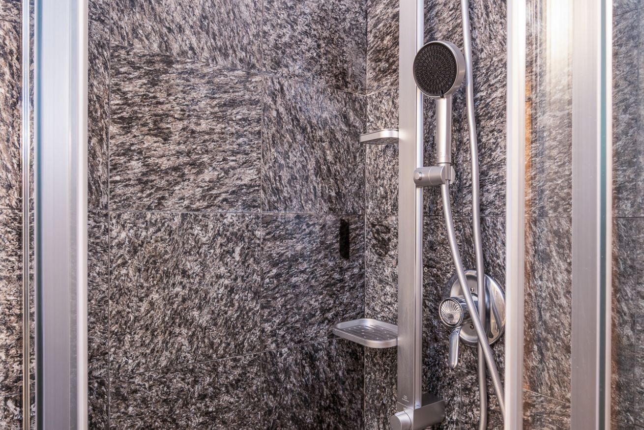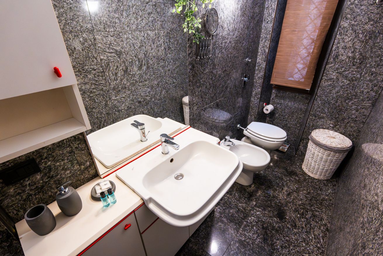 🚿 Bagno completo: Il bagno è rivestito con eleganti piastrelle in granito grigio antracite che gli conferiscono un'atmosfera sofisticata. È dotato di: