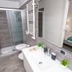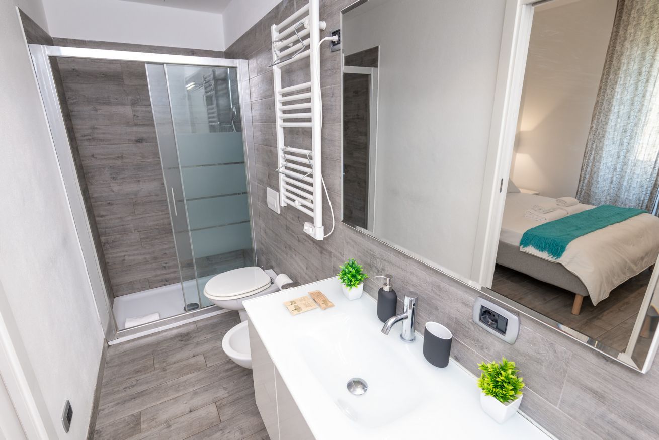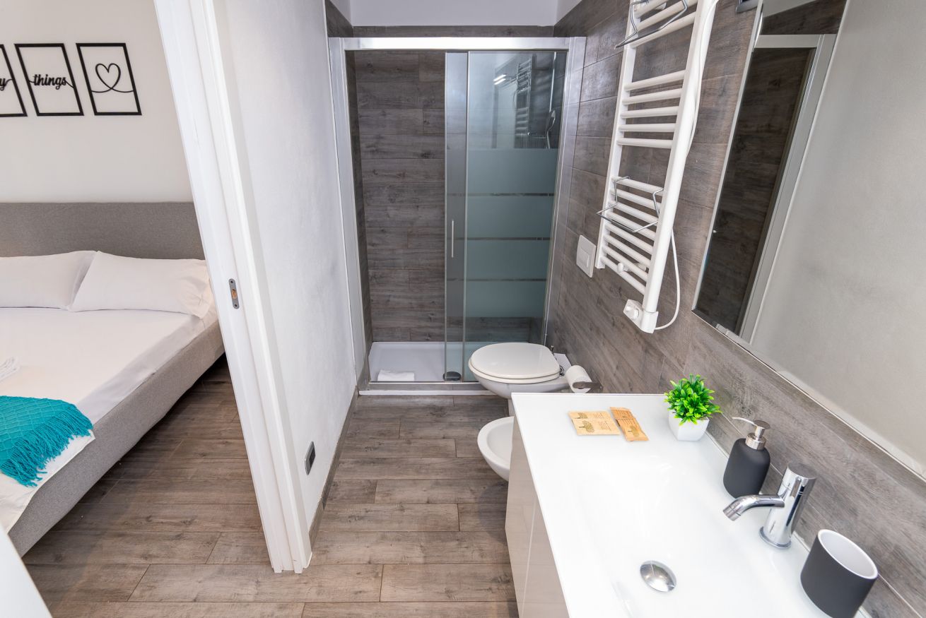 🚿 Bagno privato en-suite moderno e dotato di doccia spaziosa, bidet, asciugamani puliti e prodotti essenziali.