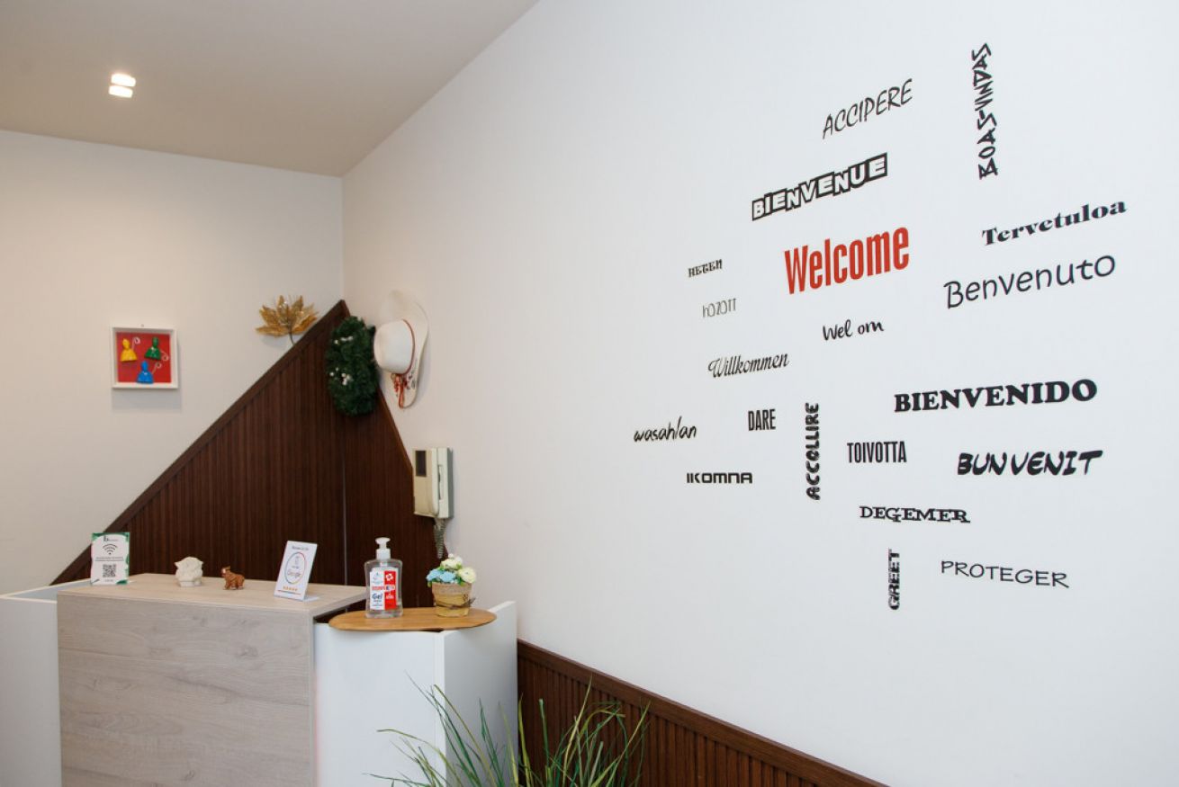 L'appartamento dispone di un ingresso con reception self-service (senza personale fisso) e una zona tavoli comune, dove ogni posto è riservato per nome — il tuo spazio ti aspetta.