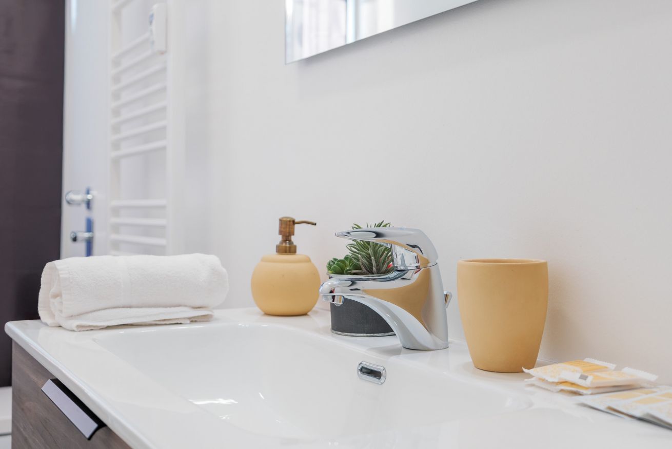 🚿 Bagno moderno: Completo di doccia walk-in, bidet e set di cortesia.