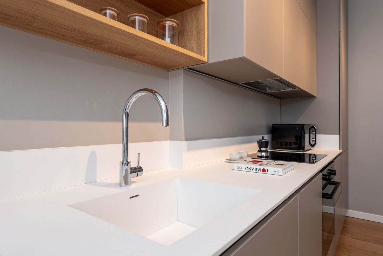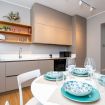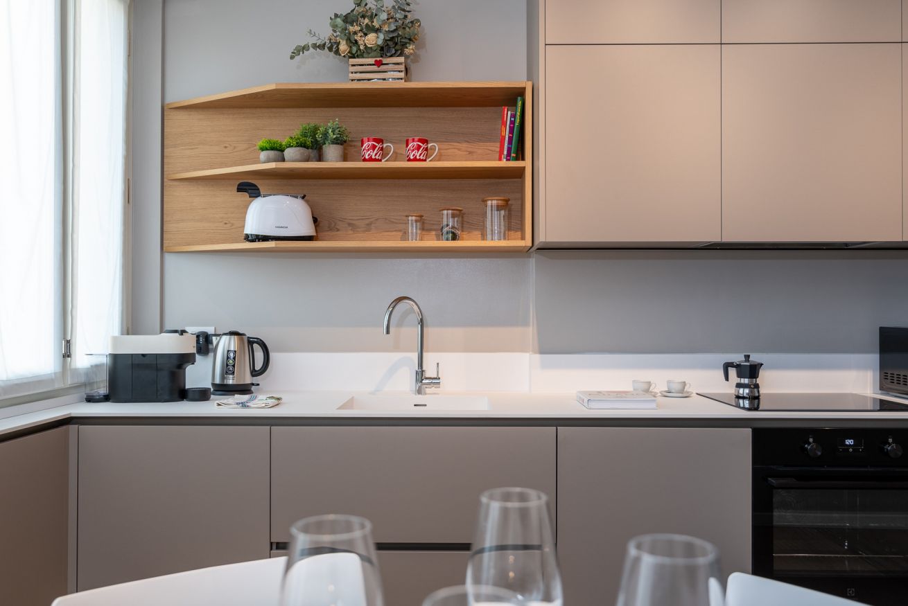 All’ingresso troverai una zona pranzo luminosa, perfetta per gustare i tuoi pasti, con una cucina completamente attrezzata a destra. Ogni dettaglio è stato curato per combinare funzionalità e stile, creando uno spazio accogliente e pratico.