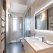 Il bagno moderno dispone di una doccia walk-in elegante e di articoli da toilette premium per un’esperienza rigenerante.